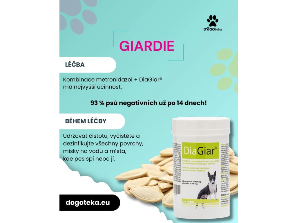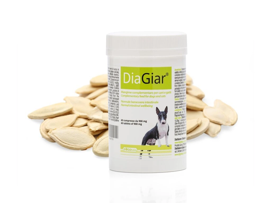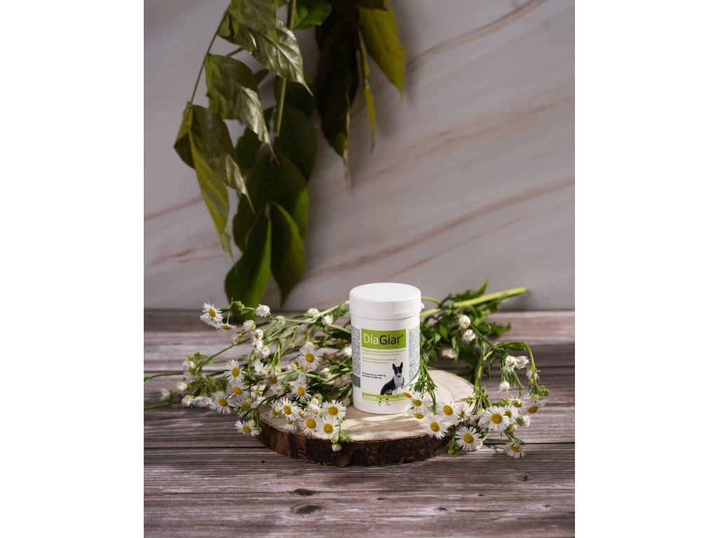 DiaGiar® je doplňkové krmivo ve formě tablet, určené pro psy a kočky s trávicími obtížemi, jako je průjem, citlivé trávení nebo narušená střevní rovnováha.