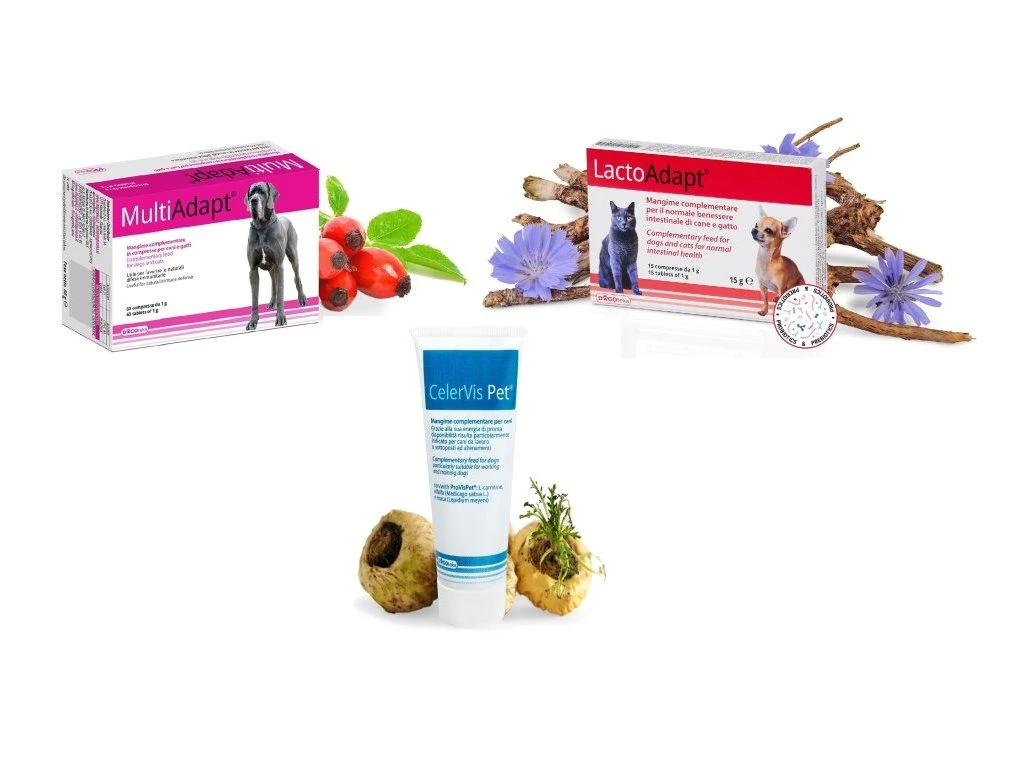 Tento výhodný box kombinuje MultiAdapt®, LactoAdapt® a CelerVis Pet® a poskytuje komplexní podporu organismu v období po porodu, během laktace nebo při zvýšené energetické zátěži.