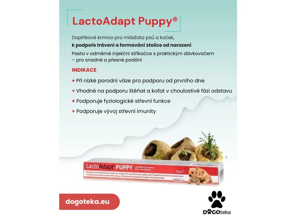 LactoAdapt PUPPY® je doplňkové krmivo ve formě pasty určené pro štěňata a koťata již od narození.